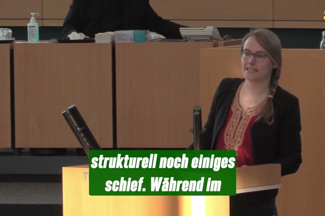 Unsere Abgeordnete Laura Wahl machte deutlich: "Diese Maxime bei Straßenvorhaben ist im Landesstraßenbedarfsplan Thüringens verankert und auch finanziell wird dort die Gewichtung deutlich. Soweit so gut. Wieso braucht es dennoch die heutige Debatte? Weil es um das große Ganze geht. Es geht um unsere Mobilität: Welche Mobilität wir uns nicht nur finanziell, sondern v.a. vor dem Hintergrund der klima- & umweltpolitischen Herausforderungen leisten können. Und da läuft strukturell noch einiges schief. Der Verkehrssektor verfehlt deutlich seine Klimaziele ! Anstatt unser Land also weiter zu asphaltieren, müssen wir den Schienengüterverkehr ausbauen, den ÖPNV verbessern und die Radwege ausbauen." #plenumth